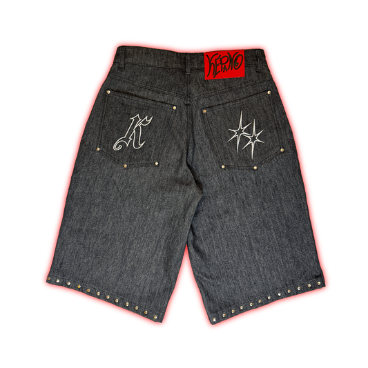 STUDDED DOUBLE KNEE DENIM SHORT